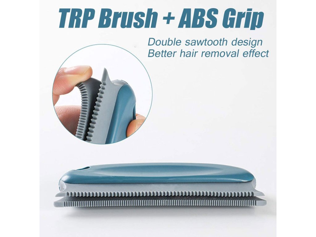Ruční hřeben na odstranění chlupů s gumovým kartáčem perfektně vyčesává chlupy a vlasy z různých povrchů. Například koberce, povlečení, prostěradla, čalounění v autě atd.